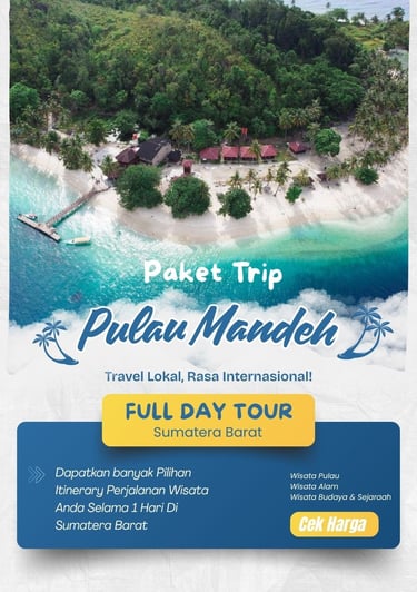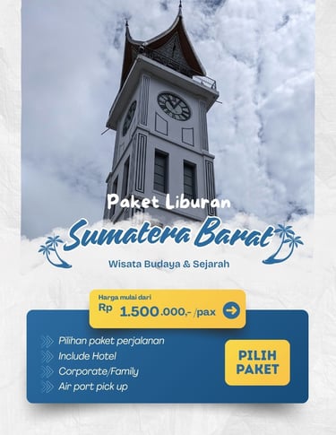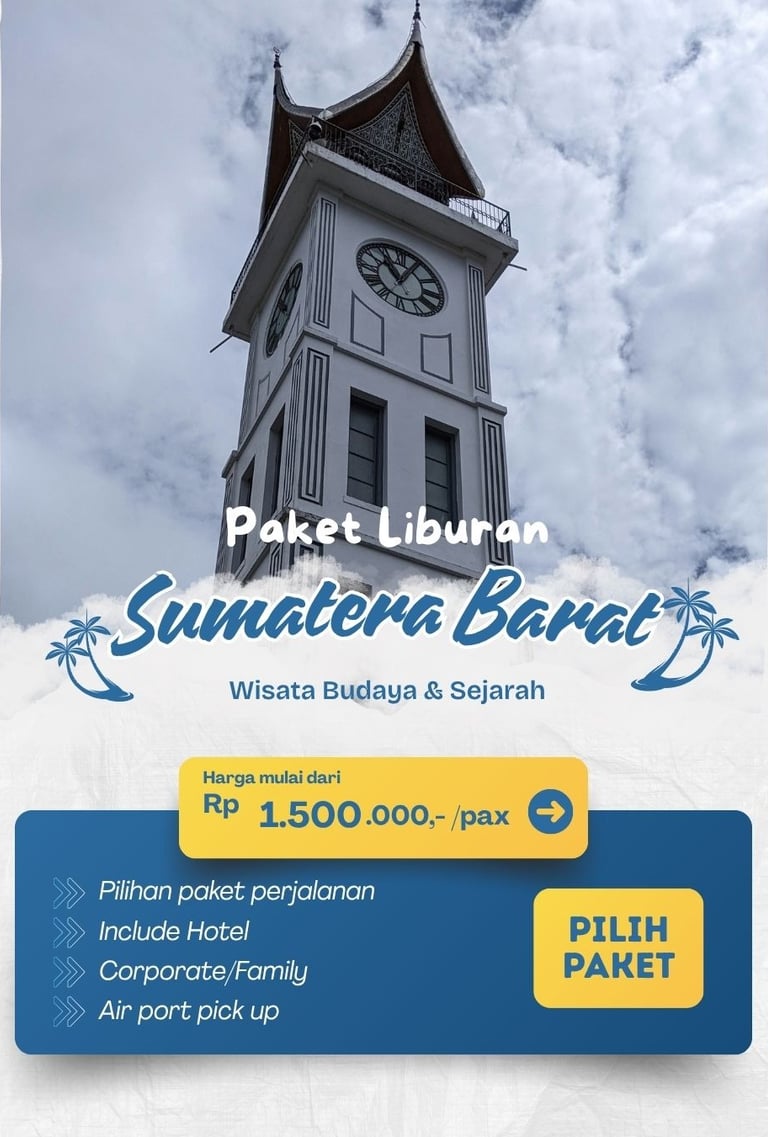 Selamat datang di Teras Sumbar Tour & Travel, penyedia paket liburan profesional di Padang dan Bukittinggi, Indonesia. Bagi Anda yang ingin berwisata ke Padang, Indonesia, kami menawarkan paket liburan di Padang dan Bukittinggi yang mengutamakan keramahan dan kenyamanan wisatawan. Kami memiliki pemandu wisata yang profesional dan berpengalaman, sehingga kunjungan Anda ke Padang dan Bukittinggi semakin menyenangkan. Kami menyediakan rencana perjalanan lengkap yang dapat disesuaikan, membantu wisatawan menghemat waktu dan biaya. Dengan harga yang sangat kompetitif dan layanan lengkap seperti hotel, kereta api, van, dan bus, kami adalah pilihan terbaik untuk paket liburan.percutian di Padang.