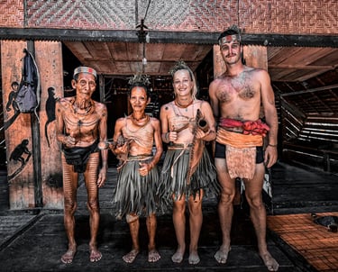 From the pier take a public motorcycle taxi to Muara Siberut to shop and report, then check the goods and explain on the way after you've finished leaving From the pier take a public motorcycle taxi to Muara Siberut to shop and report, then check the goods and explain on the way after you've finished leaving Then walk up to the boat, to where the sikerei live takes about 2 hours to the river. Half an hour walk we arrive at the big house and welcome...anaileuita..Dinner..