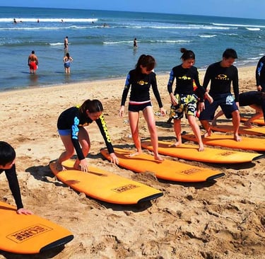 Anda dapat menemukan pelajaran selancar di sekitar Kota Padang, terutama di Pantai Air Manis / Pantai Parkit yang dikenal memiliki ombak ramah pemula. Beberapa tempat yang menawarkan kursus dan penyewaan peralatan