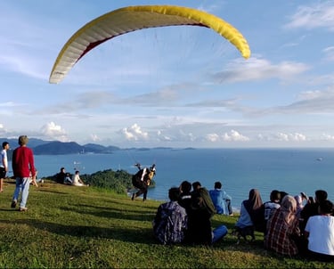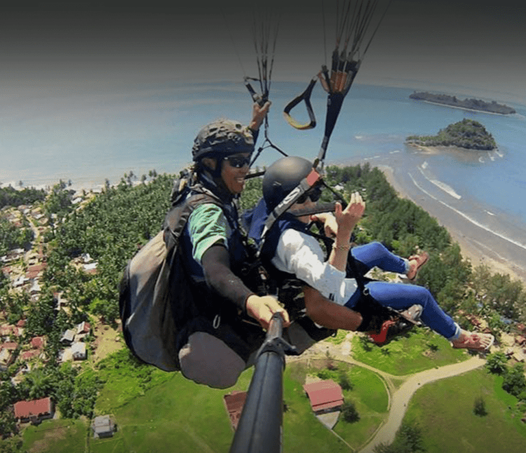 layanan terbang tandem dengan pilot berlisensi dan profesional, seperti Tandem Paralayang Padang.