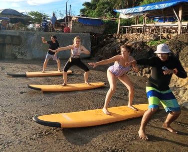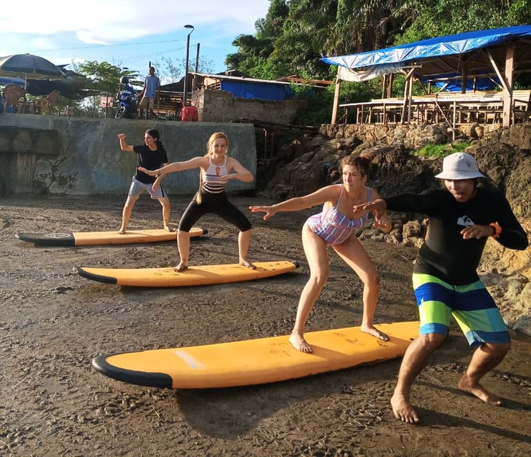 Paket Menginap (Surf & Stay): Mulai dari Rp750.000 (2 malam + 1 sesi pelajaran) hingga Rp2.650.000 (5 malam + 6 sesi pelajaran intensif)